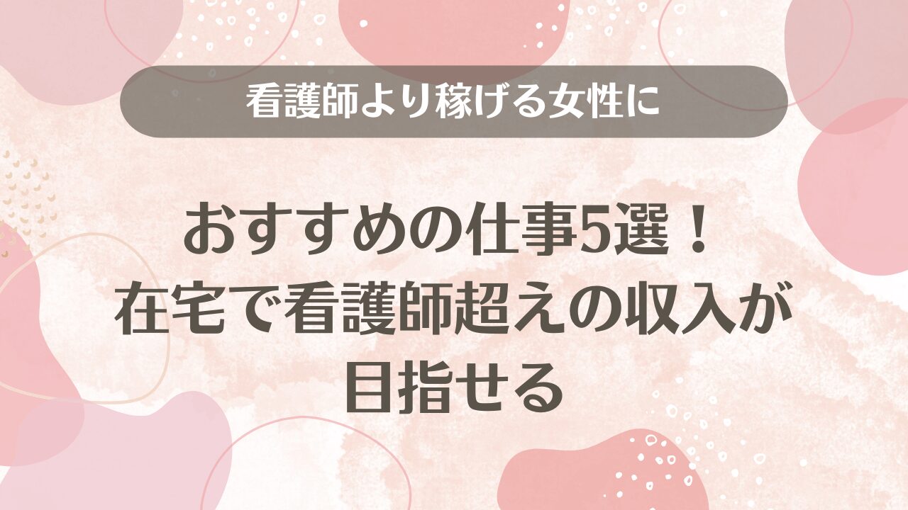 そこで本記事では、未経験からでもOKな看護師よりも稼げる仕事を5つ紹介します。
