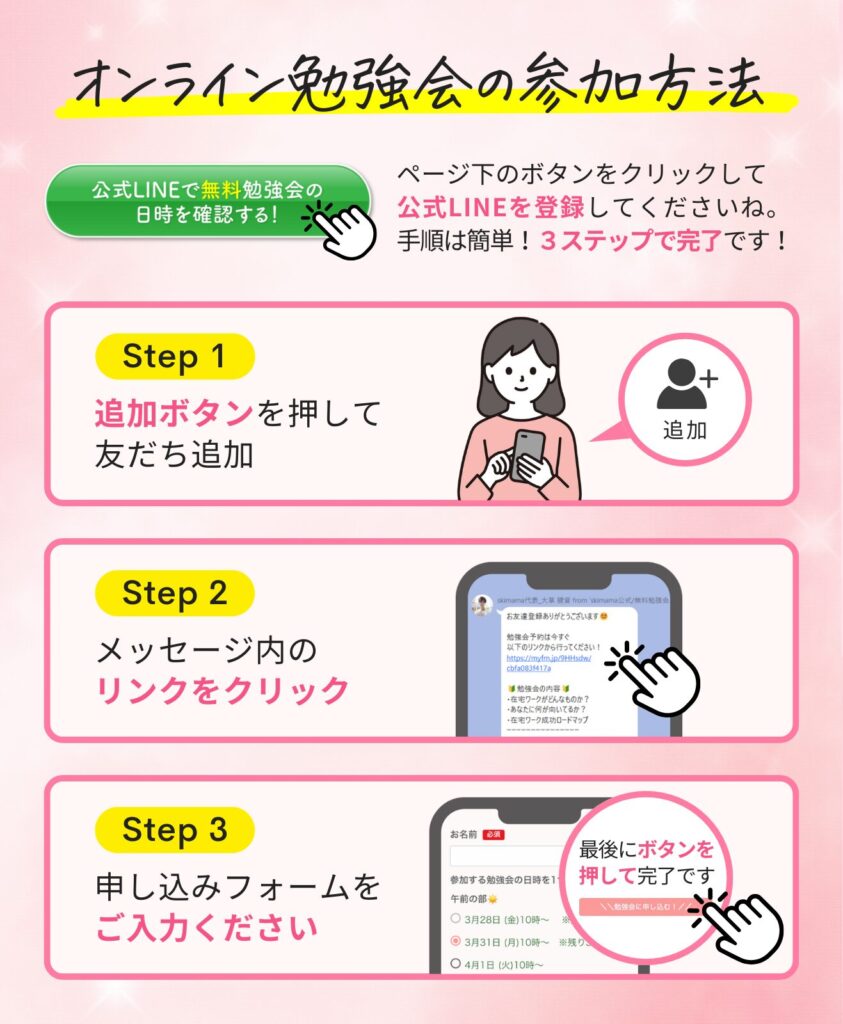 たった60分間の無料勉強会で、パートや本業以上の在宅ワーク収入を得る「第一歩を踏み出す」ことができます!