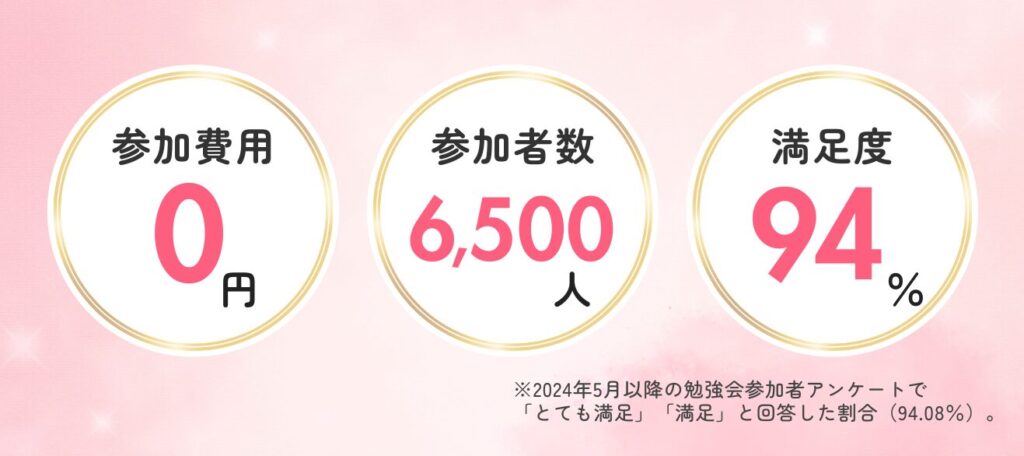 この勉強会は合計6,500名の参加者のうち6,114名の方が「満足した」と回答をしてくれています。
